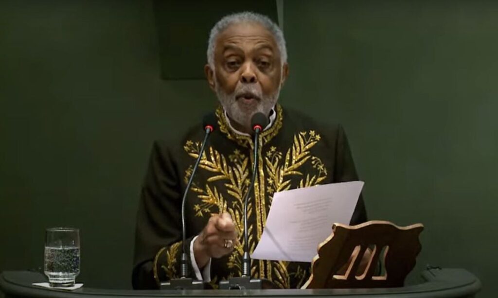 Em seu discurso de posse, Gil disse que, entre as tantas honrarias que a vida lhe proporcionou, entrar na ABL tem uma dimensão especial. “Não só porque a ABL é a casa de Machado de Assis, escritor universal, afrodescendente como eu, mas também porque a ABL representa a instância maior, que legitima e consagra, de forma perene, a atividade de um escritor ou criador de cultura em nosso país. Sou filho de uma professora primária e um médico. A eles devo o meu amor às letras e música. A imagem dos meus pais está comigo nessa noite e sua memória para mim é uma benção”, disse.
