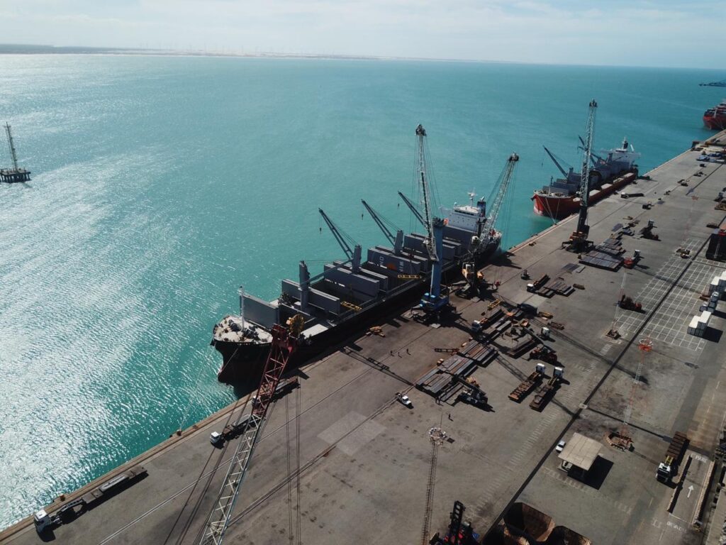 Usina de hidrogênio verde da EDP do Brasil, batizada de Pecém H2V, está em fase de construção no Complexo Industrial e Portuário do Pecém, em São Gonçalo do Amarante, na RMF