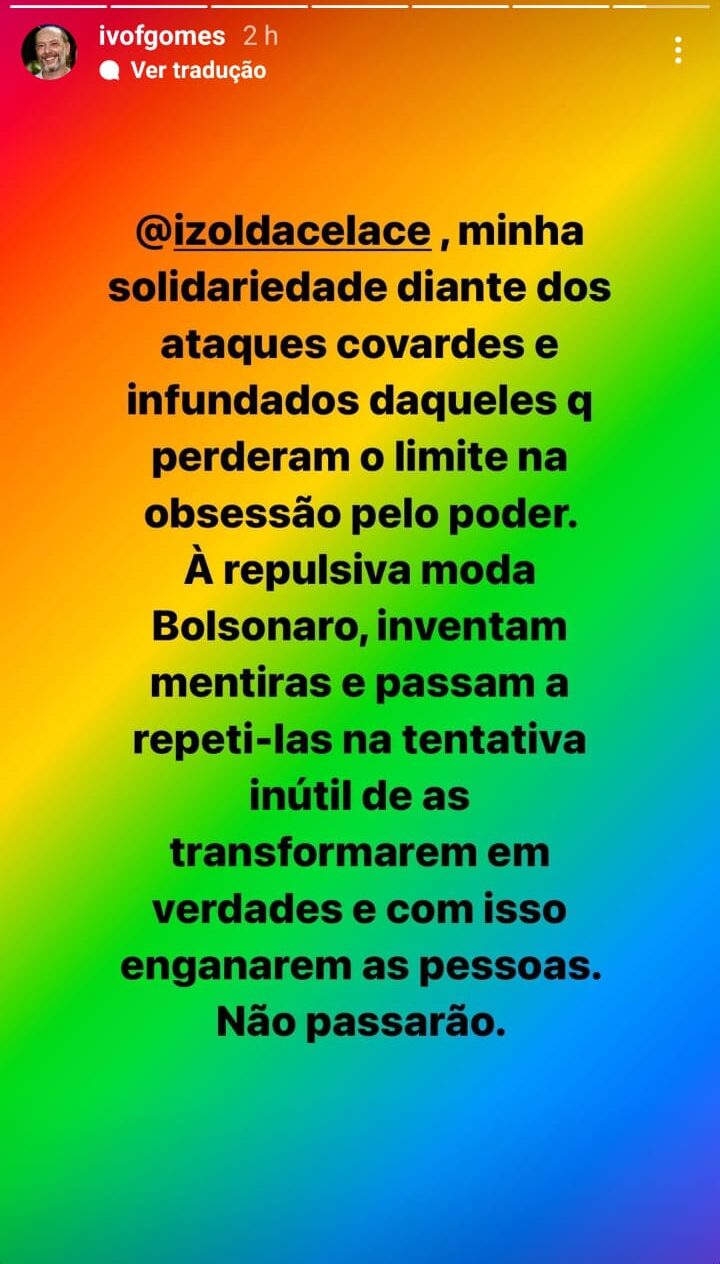 O prefeito de Sobral, Ivo Gomes (PDT), irmão e Ciro e Cid Gomes, saiu em defesa da governadora Izolda Cela (sem partido) em publicação nas redes sociais nesta quarta-feira, 7, após início de um verdadeiro cabo de guerra entre o ex-prefeito Roberto Cláudio (PDT) e a mandatária. Na publicação, Ivo se solidarizou com Izolda “diante dos ataques covardes e infundados daqueles que perderam o limite na obsessão pelo poder”. O prefeito não cita nominalmente Roberto Cláudio, que tem feito críticas à chefe do Executivo.