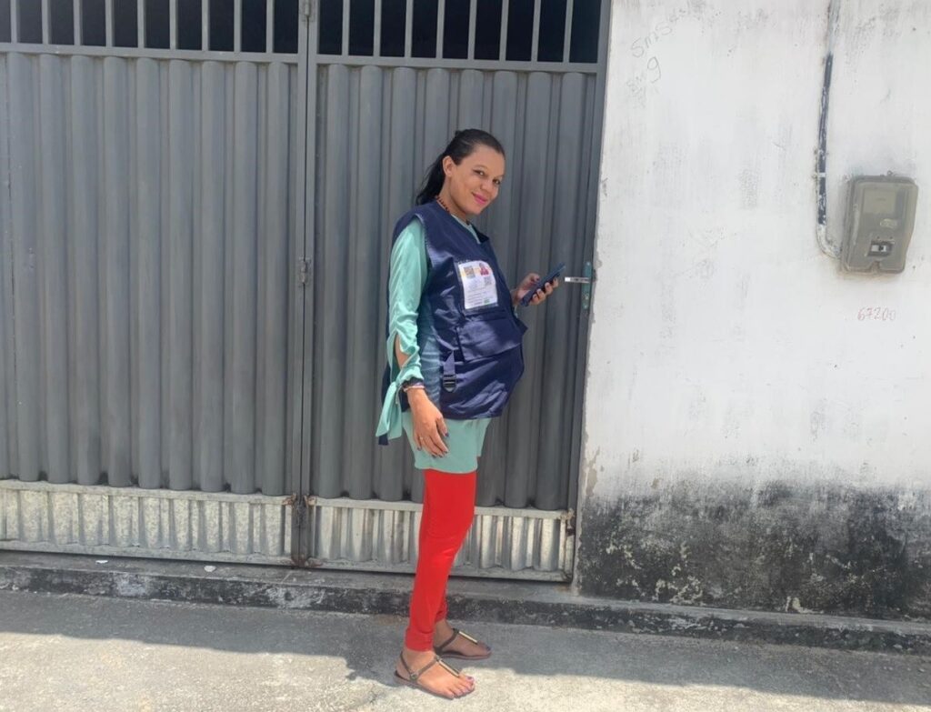 “Eu estava precisando trabalhar, aí vi a oportunidade e me inscrevi. Depois que eu fiz a prova, foi que descobri que estava grávida. Aí eu não desisti não, continuei”, conta Shirley, que já realizou 785 questionários em cinco setores censitários concluídos.