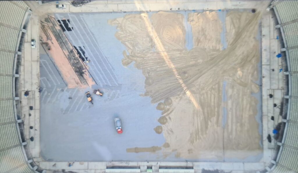 No fim de novembro, após duas semanas desde o início da obra, a reforma da estrutura do gramado passava pela fase de revisão e ampliação do sistema de drenagem. Segundo a gestão estadual, foi feita a instalação de novos tubos e da manta de drenagem. A estrutura atual recebe troca de material ao mesmo tempo em que está sendo dobrada a extensão de valas e drenos, aumentando a capacidade de drenagem.