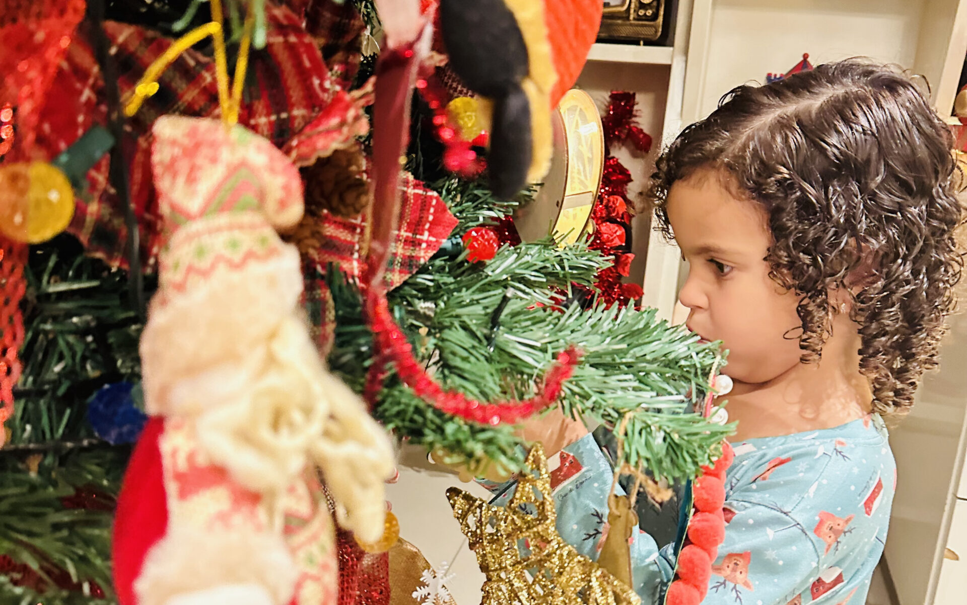 Este ano, foi ainda mais especial. Coloquei a estrela no topo da árvore. A mamãe me levantou bem lá no alto. Aprendi que o Natal é o nascimento do Menino Jesus e que é muito especial, por isso nossa casa fica cheia de luzes, enfeites e alegria. Na noite em que montamos a árvore, vestimos pijamas de natal, convidamos amiguinhos, rezamos e ouvimos música. Foi muito divertido! Na sua casa é assim também?