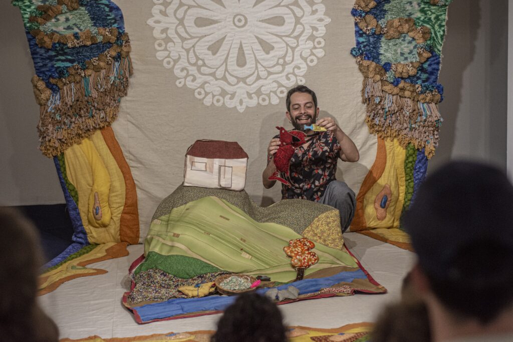 O grupo, que é referência internacional em contação de histórias e criação de cenários têxteis, além de se destacar como pesquisares sobre as intersecções entre texto e têxtil, já realizou 60 obras criadas no Brasil, França e Peru. As apresentações com os itens bordados são realizadas com o auxílio da voz e interpretação dos integrantes do coletivo.