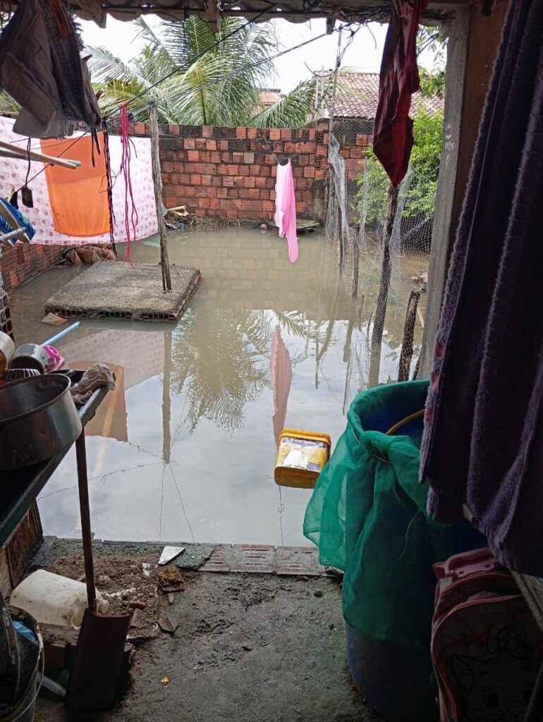 No município de Maranguape, localizado na Região Metropolitana de Fortaleza, foram registradas inundações e alagamentos em locais próximos ao Rio Gavião, nesta sexta-feira (17), devido às fortes chuvas registradas desde quinta-feira (16). Moradores gravaram vídeos mostrando a situação, nos quais é possível observar um fluxo intenso de água pelas vias, invadindo residências e deixando pontos alagados.