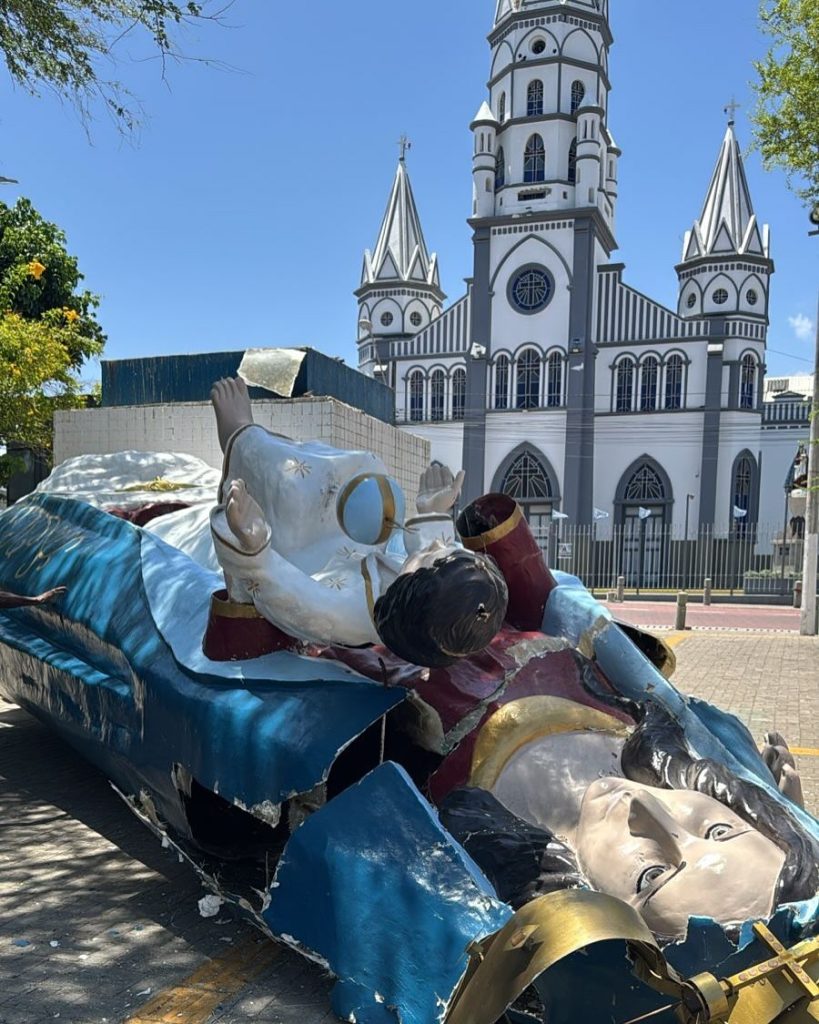 “Agradecemos imensamente a Deus por não ter causado danos a nenhuma pessoa que circulava pela região no momento. Essa imagem é um símbolo de fé e devoção para a nossa paróquia e comunidade, sonhada com tanto carinho pelo Padre Batista, e permanecerá vida em nossos corações e orações”, disse a nota publicada em redes sociais.
