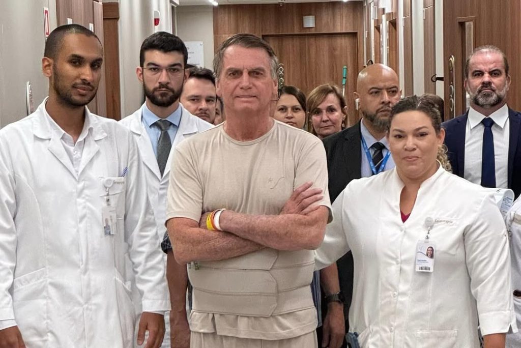 Bolsonaro está internado no Hospital DF Star desde o dia 12 de abril, após se submeter a um procedimento cirúrgico para desobstrução de parte do intestino. Um dia antes, durante agenda no Rio Grande do Norte, ele teve um mal súbito decorrente da facada que sofreu em 2018, durante a campanha presidencial. Após passar por dois hospitais no RN, foi transferido para a capital federal, onde realizou a cirurgia.