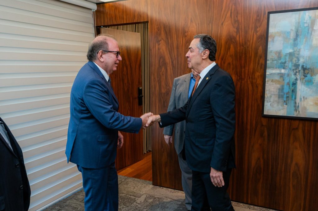 O presidente do Supremo Tribunal Federal (STF) e do Conselho Nacional de Justiça (CNJ), ministro Luís Roberto Barroso, esteve nesta segunda-feira (21) na sede da Federação das Indústrias do Estado do Ceará (Fiec), em Fortaleza. Ele foi recebido pelo presidente da entidade, Ricardo Cavalcante, em uma visita que antecedeu sua participação no evento Diálogos da Magistratura.