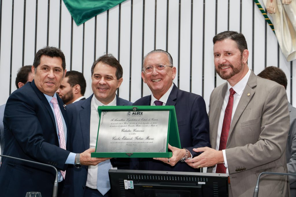 Em uma cerimônia marcada por homenagens, a Assembleia Legislativa do Estado do Ceará (Alece) concedeu nesta sexta-feira (22), o Título de Cidadão Cearense ao narrador esportivo Carlos Eduardo Galvão Bueno. A solenidade ocorreu no Plenário 13 de Maio e atendeu a um requerimento do deputado estadual De Assis Diniz (PT). A condução do evento ficou a cargo do presidente da Casa, deputado Romeu Aldigueri (PSB).
