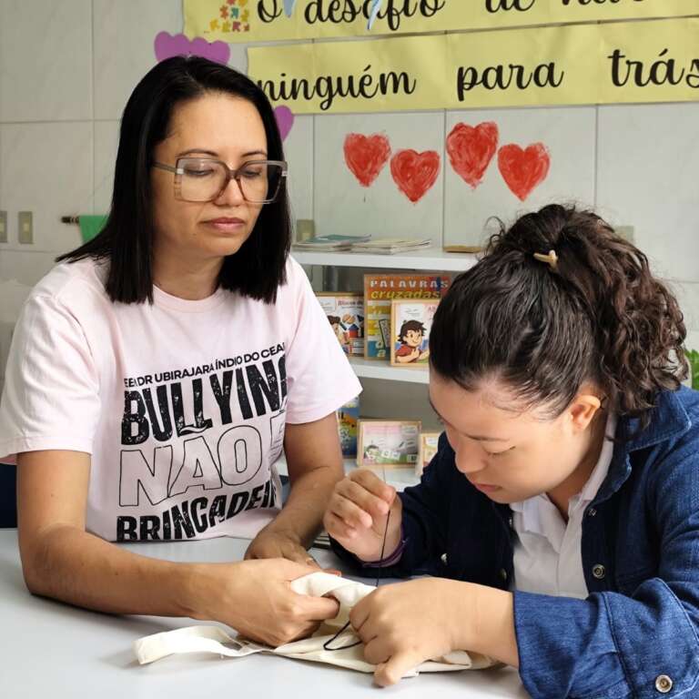 Na Escola de Ensino Médio (EEM) Ubirajara Índio do Ceará, também em Fortaleza, os alunos acolhidos pelo Atendimento Educacional Especializado (AEE) recebem apoio complementar ou suplementar incluiu a prática de bordado, pintura, crochê e desenho entre as atividades ofertadas. Apenas no bordado, há atualmente 13 alunos participando.