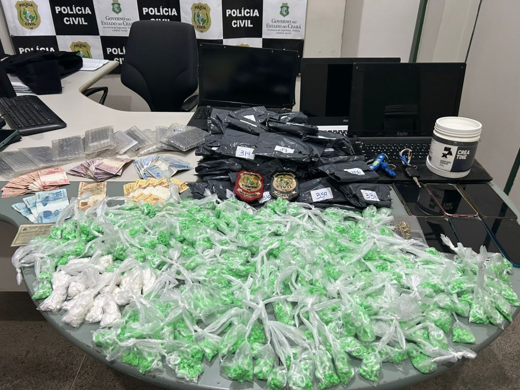 Os policiais civis apreenderam dois veículos, cerca de 8 mil pedras de crack, 200 trouxinhas de cocaína e materiais usados no comércio de drogas. Um aparelho celular com registro de roubo também foi recuperado durante o cumprimento das ordens judiciais.