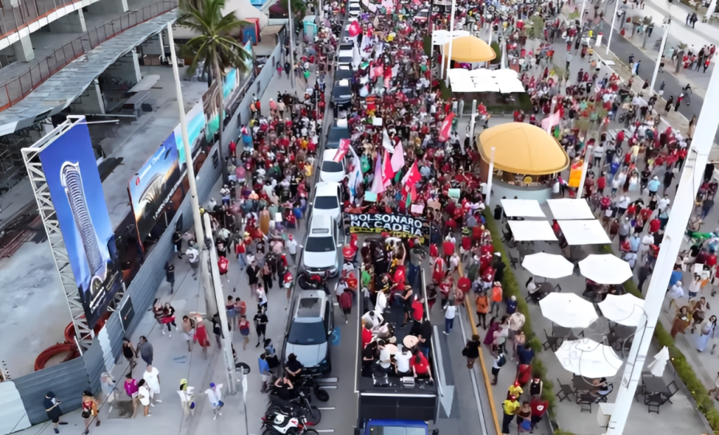 Imagens registradas no local mostram manifestantes segurando cartazes com frases como “Congresso inimigo do povo” e “sem anistia”. Em vídeos que circulam nas redes sociais, o grupo também aparece fazendo a chamada “vaia cearense”, direcionada ao Congresso Nacional, em protesto contra a tramitação de projetos considerados, pelos organizadores, como um retrocesso no enfrentamento aos crimes contra a democracia.