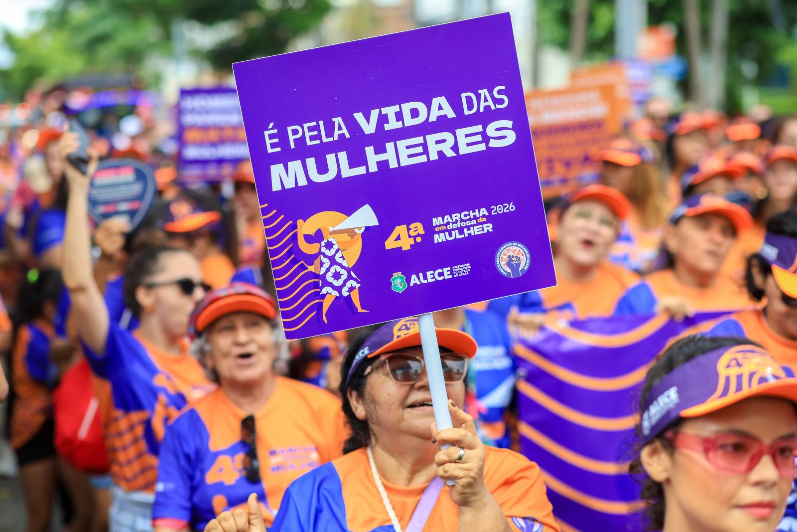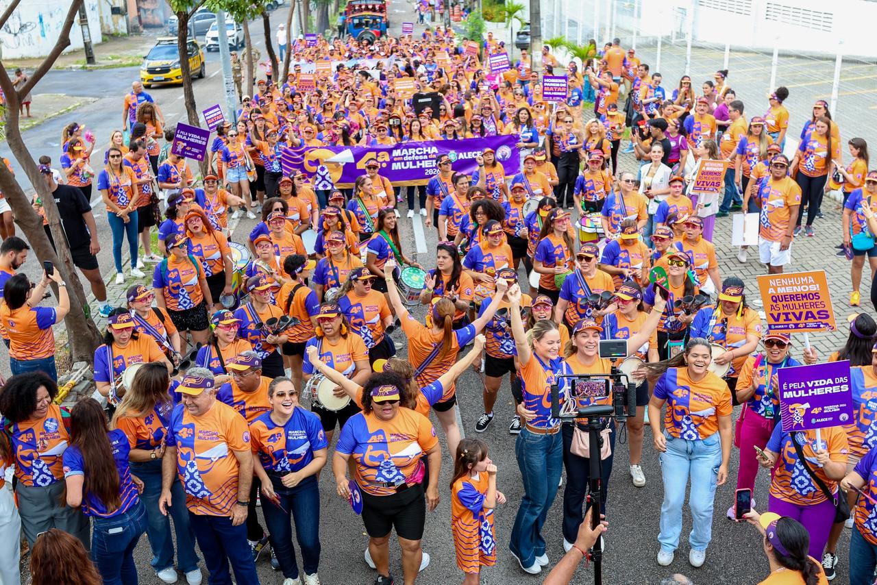 Parlamentares, servidores e entidades parceiras caminharam em defesa dos direitos das mulheres, partindo da concentração, na sede da PEM, até a Praça da Imprensa, mobilização que pediu justiça, igualdade e o fim da violência contra as mulheres.