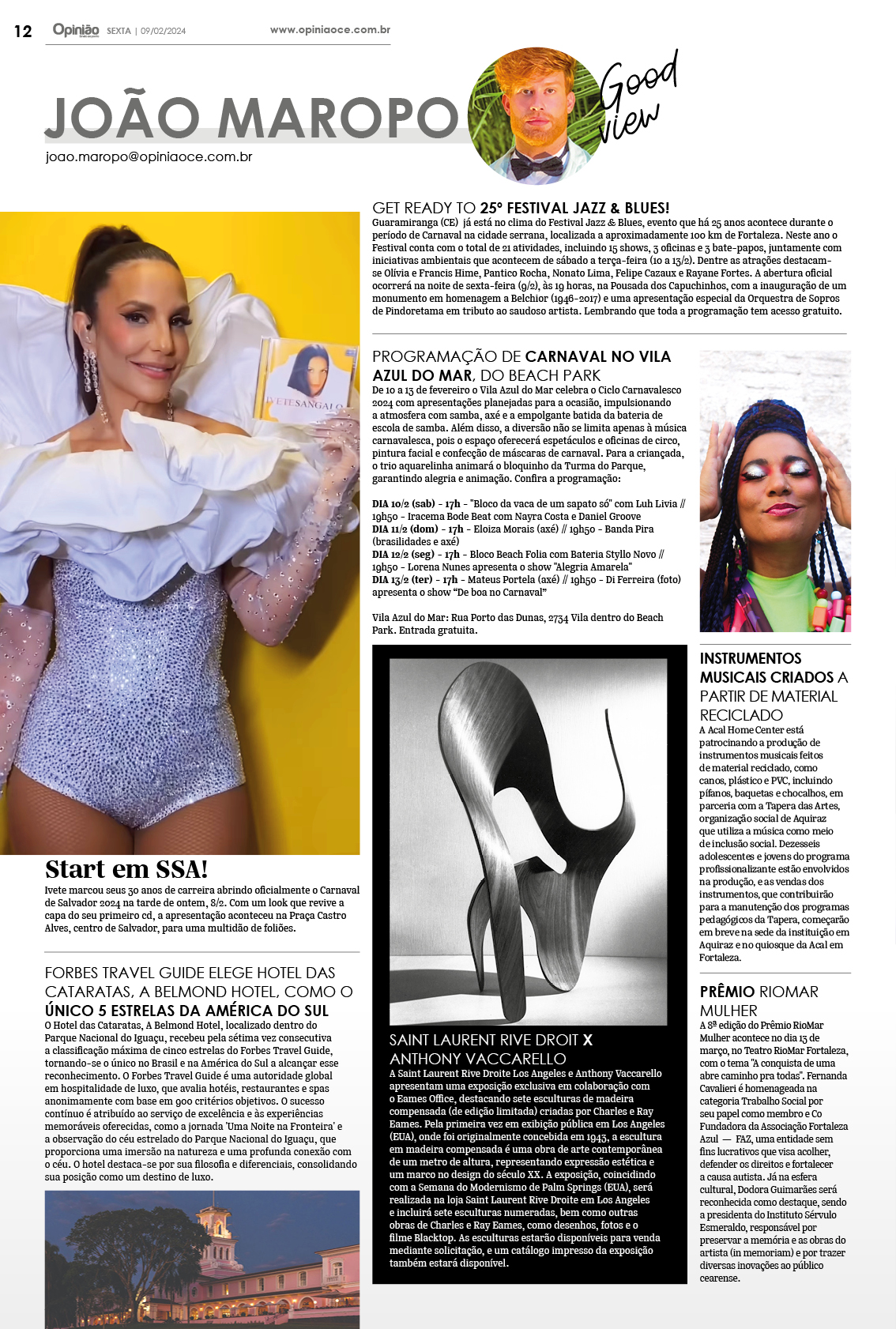 DIA 12/2 (seg) – 17h – Bloco Beach Folia com Bateria Styllo Novo // 19h50 – Lorena Nunes apresenta o show “Alegria Amarela”