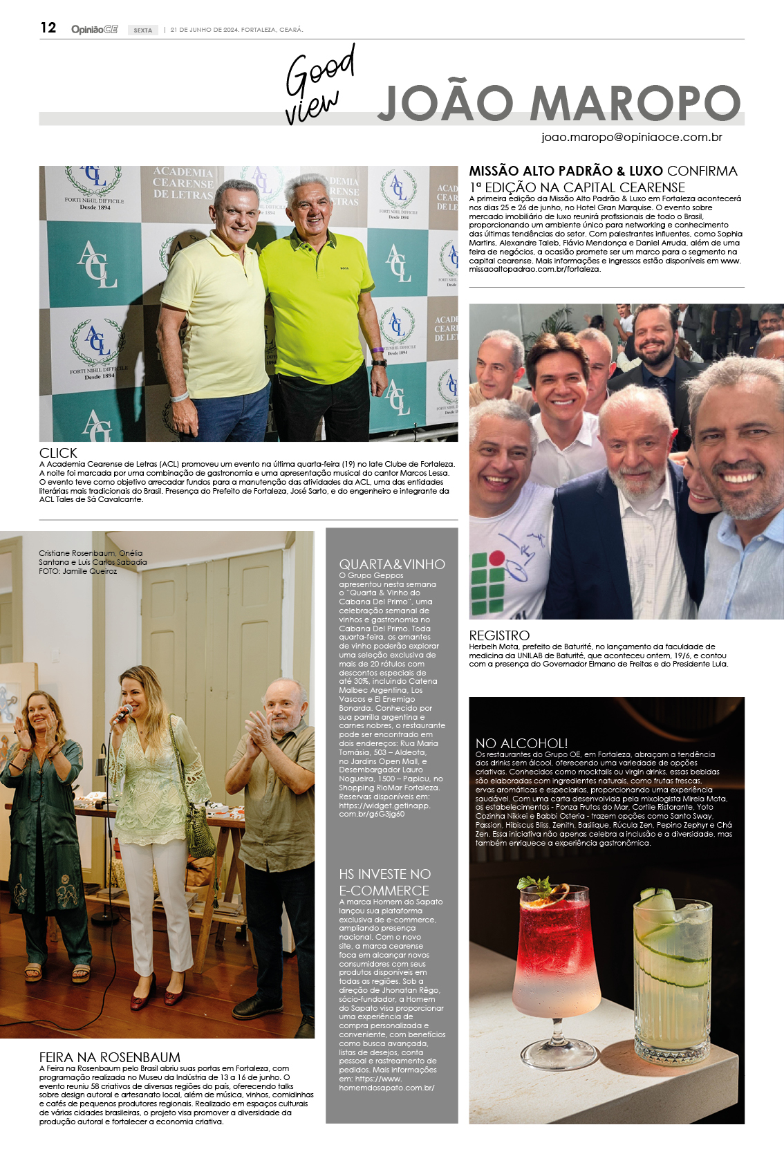 A Academia Cearense de Letras (ACL) promoveu um evento na última quarta-feira (19) no Iate Clube de Fortaleza. A noite foi marcada por uma combinação de gastronomia e uma apresentação musical do cantor Marcos Lessa. O evento teve como objetivo arrecadar fundos para a manutenção das atividades da ACL, uma das entidades literárias mais tradicionais do Brasil. Presença do Prefeito de Fortaleza, José Sarto, e do engenheiro e integrante da ACL Tales de Sá Cavalcante.