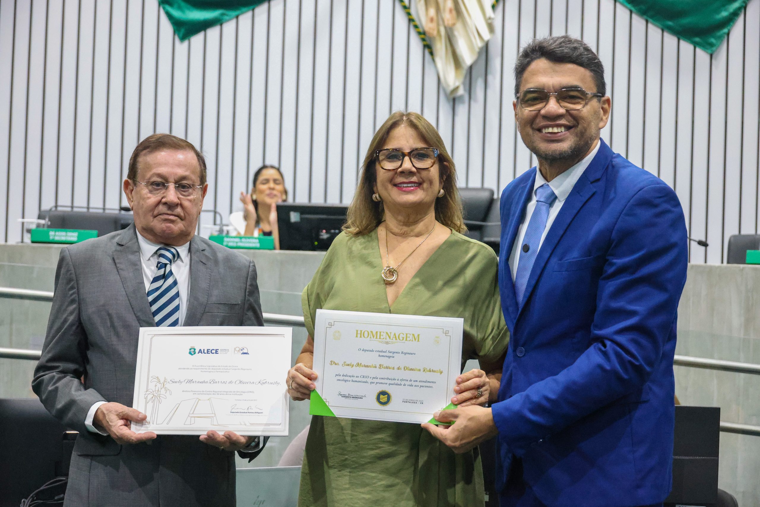 A Assembleia Legislativa do Ceará realizou, nesta quarta-feira (25), sessão solene em homenagem aos 50 anos do Centro Regional Integrado de Oncologia (CRIO), uma das maiores referências em tratamento oncológico do Norte-Nordeste. A cerimônia ocorreu no Plenário 13 de Maio e foi presidida pelo deputado Romeu Aldigueri, atendendo a requerimento do deputado Sargento Reginauro, com apoio de outros parlamentares.