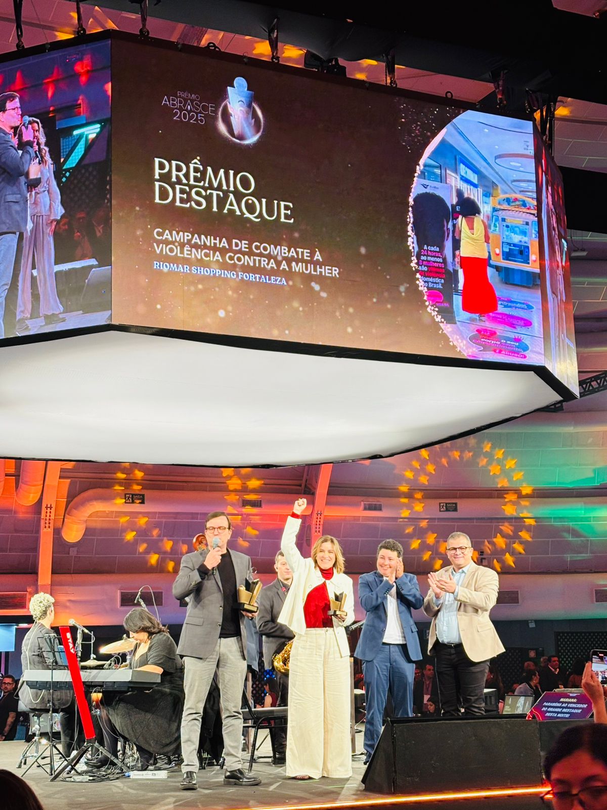 Já o RioMar Fortaleza, do Grupo JCPM, foi o grande vencedor da noite. O shopping foi eleito “Destaque do Ano” — o troféu mais importante da premiação — com o projeto Fala Mulher: Campanha de combate à violência contra a mulher, realizado em parceria com o Tribunal de Justiça do Ceará. A iniciativa recebeu nota máxima em todos os critérios de avaliação entre os 730 cases inscritos. O mesmo projeto também levou o Ouro na categoria Newton Rique de Sustentabilidade, somando dois dos títulos mais relevantes da edição 2025.