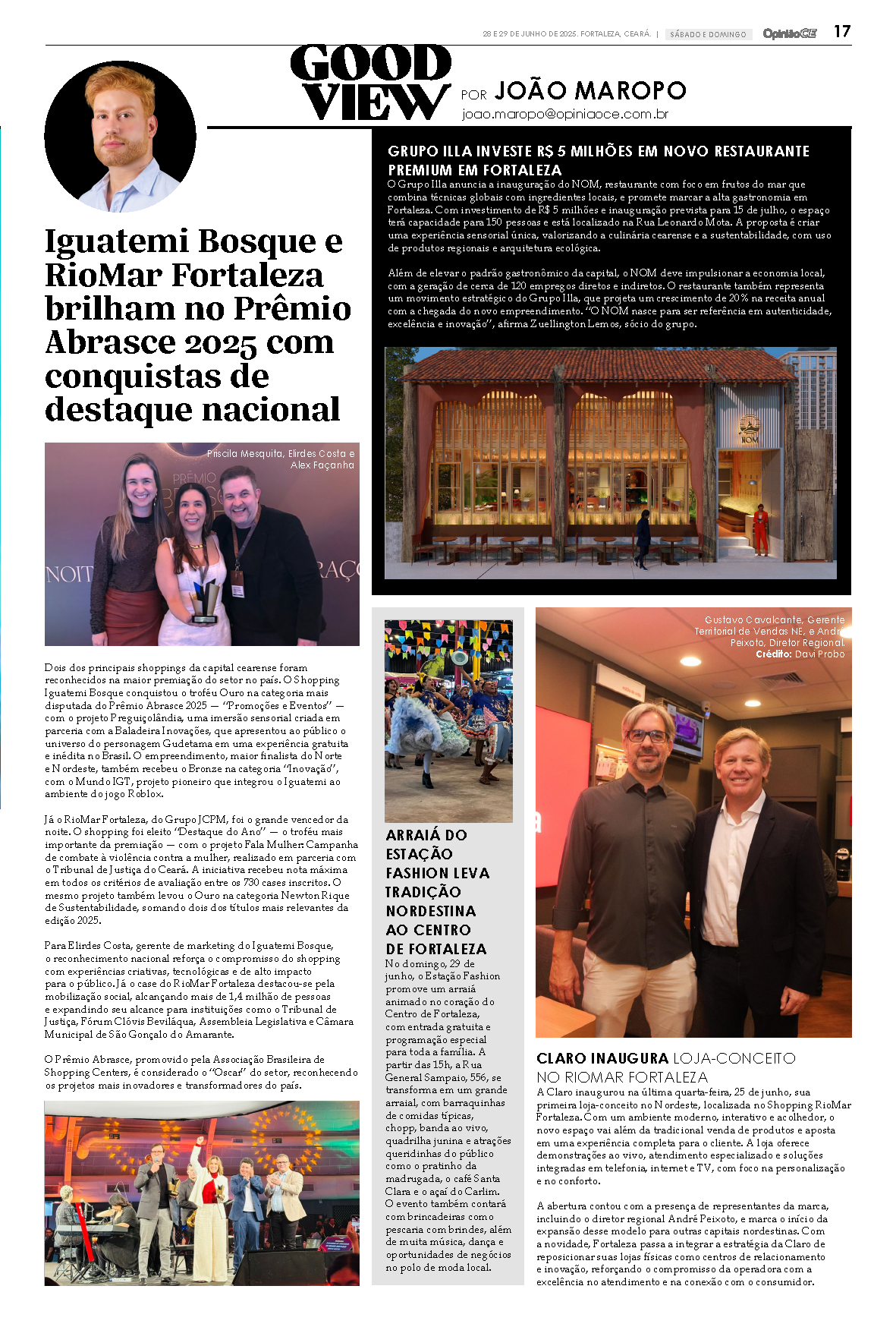 A Claro inaugurou na última quarta-feira, 25 de junho, sua primeira loja-conceito no Nordeste, localizada no Shopping RioMar Fortaleza. Com um ambiente moderno, interativo e acolhedor, o novo espaço vai além da tradicional venda de produtos e aposta em uma experiência completa para o cliente. A loja oferece demonstrações ao vivo, atendimento especializado e soluções integradas em telefonia, internet e TV, com foco na personalização e no conforto.
