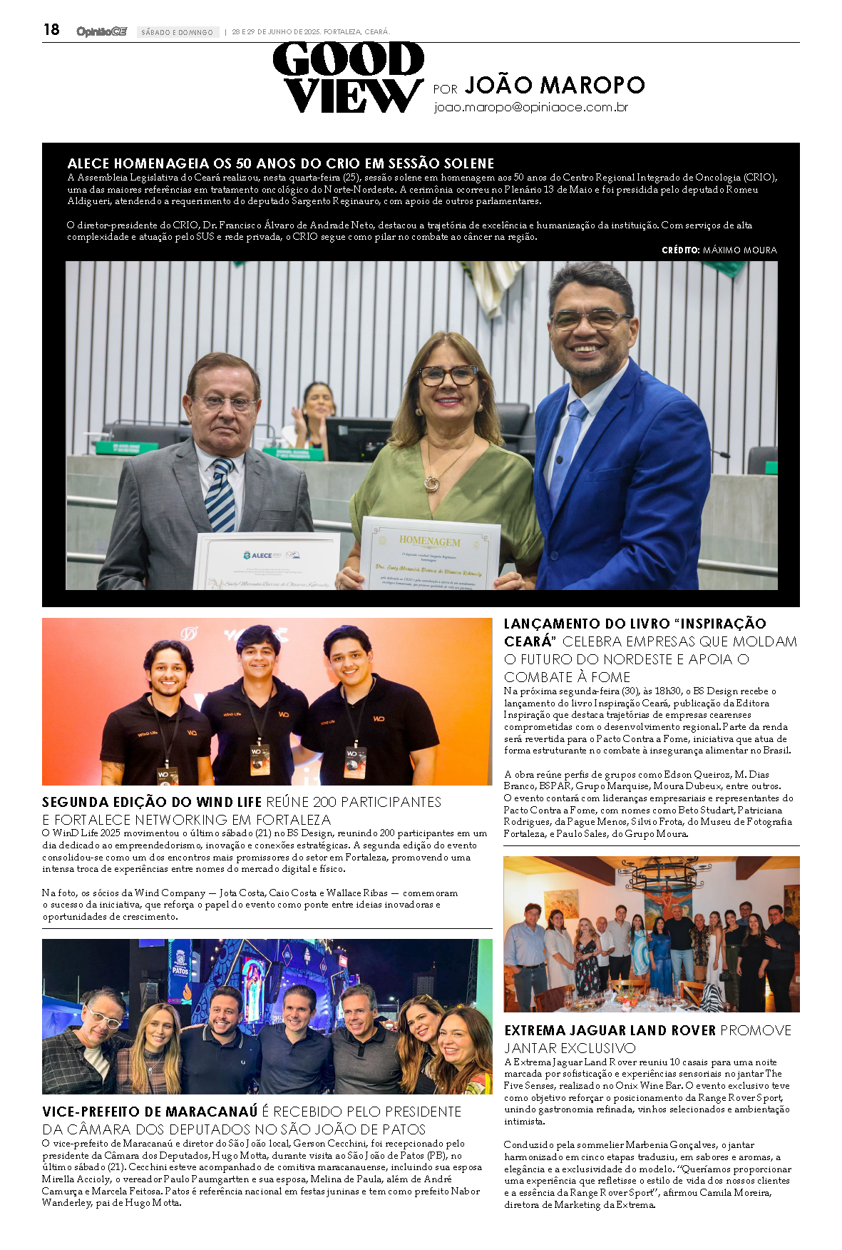Na próxima segunda-feira (30), às 18h30, o BS Design recebe o lançamento do livro Inspiração Ceará, publicação da Editora Inspiração que destaca trajetórias de empresas cearenses comprometidas com o desenvolvimento regional. Parte da renda será revertida para o Pacto Contra a Fome, iniciativa que atua de forma estruturante no combate à insegurança alimentar no Brasil.