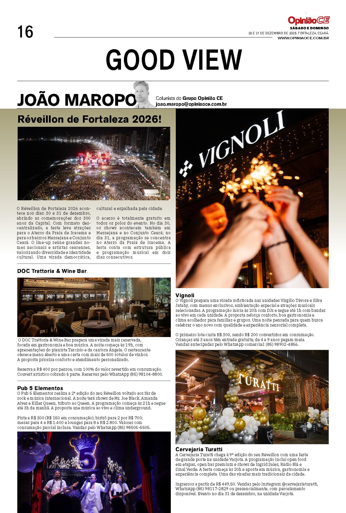A Cervejaria Turatti chega à 9ª edição do seu Réveillon com uma festa de grande porte na unidade Varjota. A programação inclui open food em etapas, open bar premium e shows de Ingrid Sales, Rádio Blá e Sinal Verde. A festa começa às 20h e aposta em música, gastronomia e experiência completa. Uma das viradas mais tradicionais da cidade.