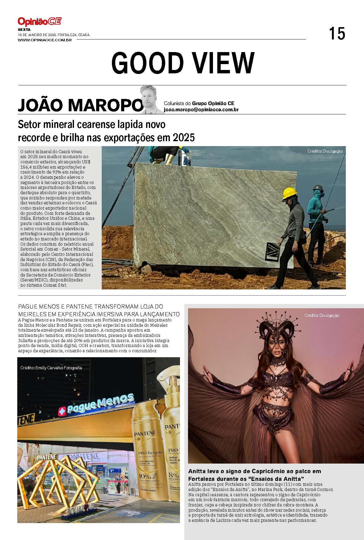 O setor mineral do Ceará viveu em 2025 seu melhor momento no comércio exterior, alcançando US$ 156,4 milhões em exportações e crescimento de 93% em relação a 2024. O desempenho elevou o segmento à terceira posição entre os maiores exportadores do estado, com destaque absoluto para o quartzito, que sozinho respondeu por metade das vendas externas e colocou o Ceará como maior exportador nacional do produto. Com forte demanda da Itália, Estados Unidos e China, e uma pauta cada vez mais diversificada, o setor consolida sua relevância estratégica e amplia a presença do estado no mercado internacional. Os dados constam do relatório anual Setorial em Comex – Setor Mineral, elaborado pelo Centro Internacional de Negócios (CIN), da Federação das Indústrias do Estado do Ceará (FIEC), com base nas estatísticas oficiais da Secretaria de Comércio Exterior (Secex/MDIC), disponibilizadas no sistema Comex Stat.