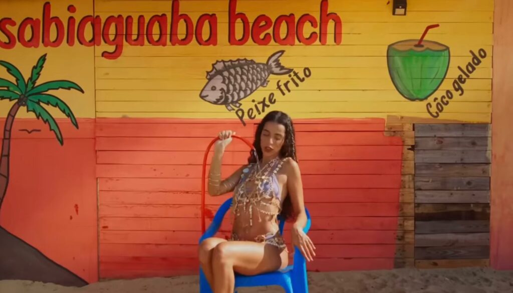 Marina Sena aproveitou sua participação no Festival Zepelim e utilizou o visual do litoral leste de Fortaleza para criar o mote do clipe ‘um dia de praia entre amigos’. A locação foi feita em uma barraca de praia da comunidade da Boca da Barra. Além da ambientação, a produção do clipe foi toda cearense e envolveu 85 pessoas.