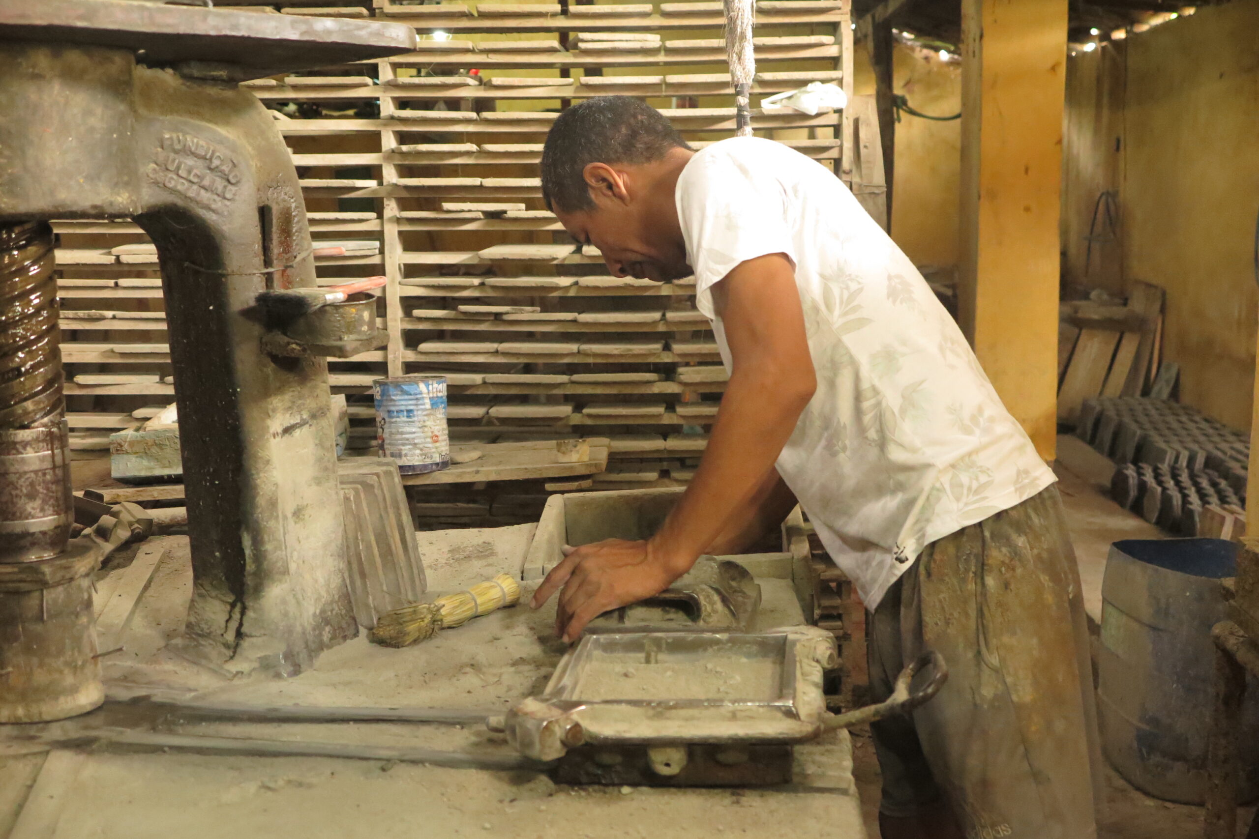 Levar para a frente não é uma tarefa fácil, pois a construção de um ladrilho é como uma espécie de ritual ou receita de bolo. E cada detalhe é importante. “Além de fabricar os desenhos, tem a mistura de materiais. Cada uma dessas tintas pega quatro ou cinco tipos de material. Se errar uma colher de sopa de um traço para o outro, pode atrapalhar, porque fica uma mais do que outra”, explica Jaime.