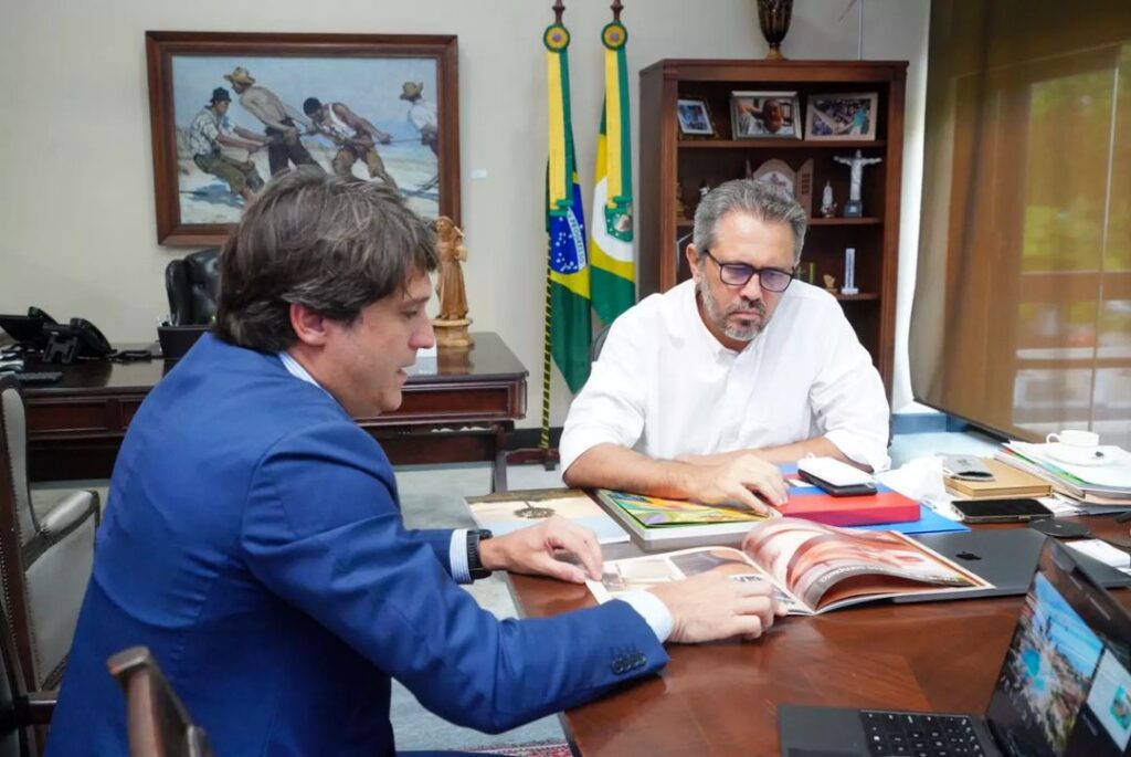 O governador Elmano de Freitas (PT) cumpriu agenda nesta terça-feira (20) com o empresário Eduardo Juaçaba, um dos sócios fundadores do Grupo Carnaúba, responsável por empreendimentos na Praia do Preá, em Cruz. Conforme Elmano, os projetos nos ramos imobiliários e turísticos, já em construção, quando estiverem em funcionamento, vão gerar cerca de 2 mil empregos diretos e indiretos Estado.