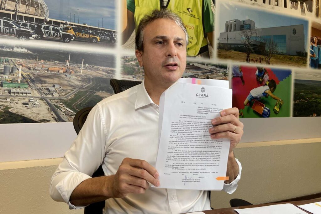 O governador Camilo Santana (PT), sancionou nesta terça-feira (29) a lei, aprovada na Assembleia Legislativa do Ceará, que institui o Plano de Universalização do Tempo Integral na rede pública de ensino do Ceará até 2026. A ação aconteceu durante live em suas redes sociais.