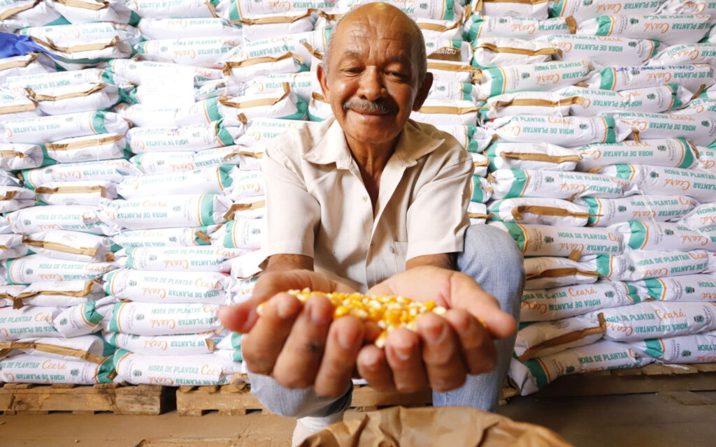 Em dezembro do ano passado, o Estado lançou o Projeto Hora de Plantar Safra 2023/2024. Com investimentos de R$ 26 milhões, a iniciativa visa beneficiar 155 mil agricultores em 182 municípios cearenses. Nesta edição, as distribuições de sementes de feijão caupi (231 toneladas), capim mombaça (3 toneladas) e de algodão (10 toneladas) estão entre as novidades para 2023/2024. Também estão sendo fornecidas aos agricultores e agricultoras familiares sementes de milho híbrido (2 mil toneladas), milho variedade (500 toneladas), sorgo forrageiro (180 toneladas), mudas de cajueiro anão (500 mil), aroeira (4.445 mudas), sabiá (39.926 mudas), maniva (5mil m³ – 10 milhões de mudas) e palma (2,5 milhões de raquetes).