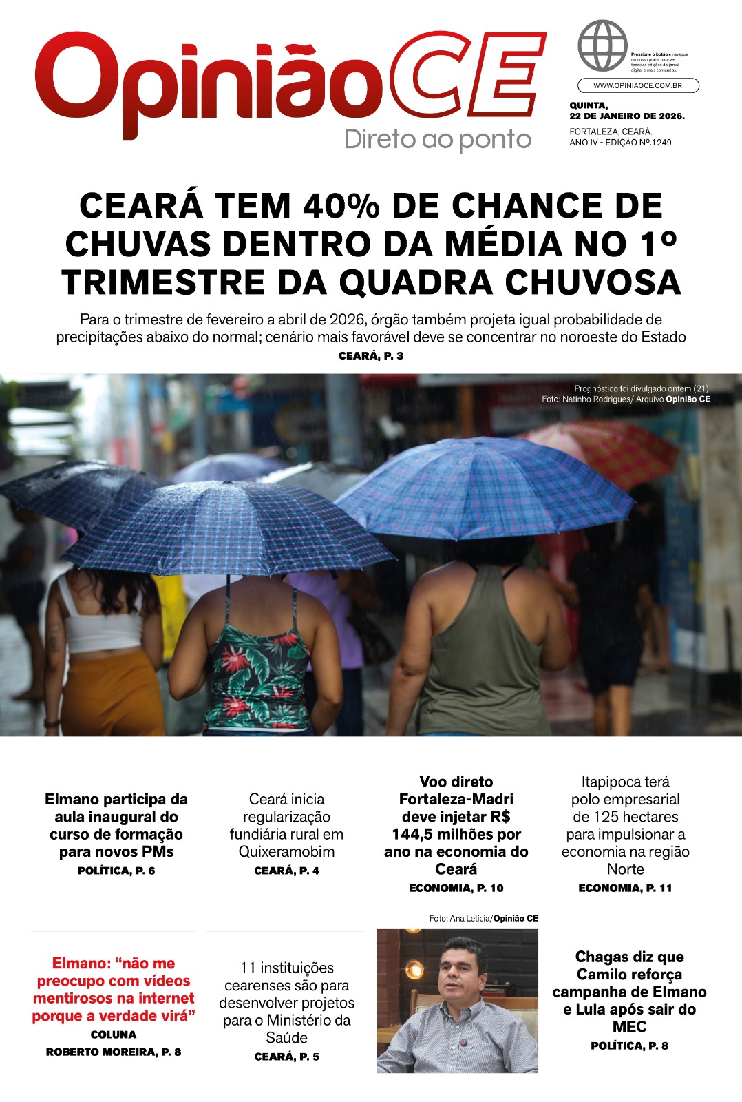 Jornal EDIÇÃO Nº.1249 CEARÁ TEM 40% DE CHANCE DE CHUVAS DENTRO DA MÉDIA NO 1º TRIMESTRE DA QUADRA CHUVOSA
