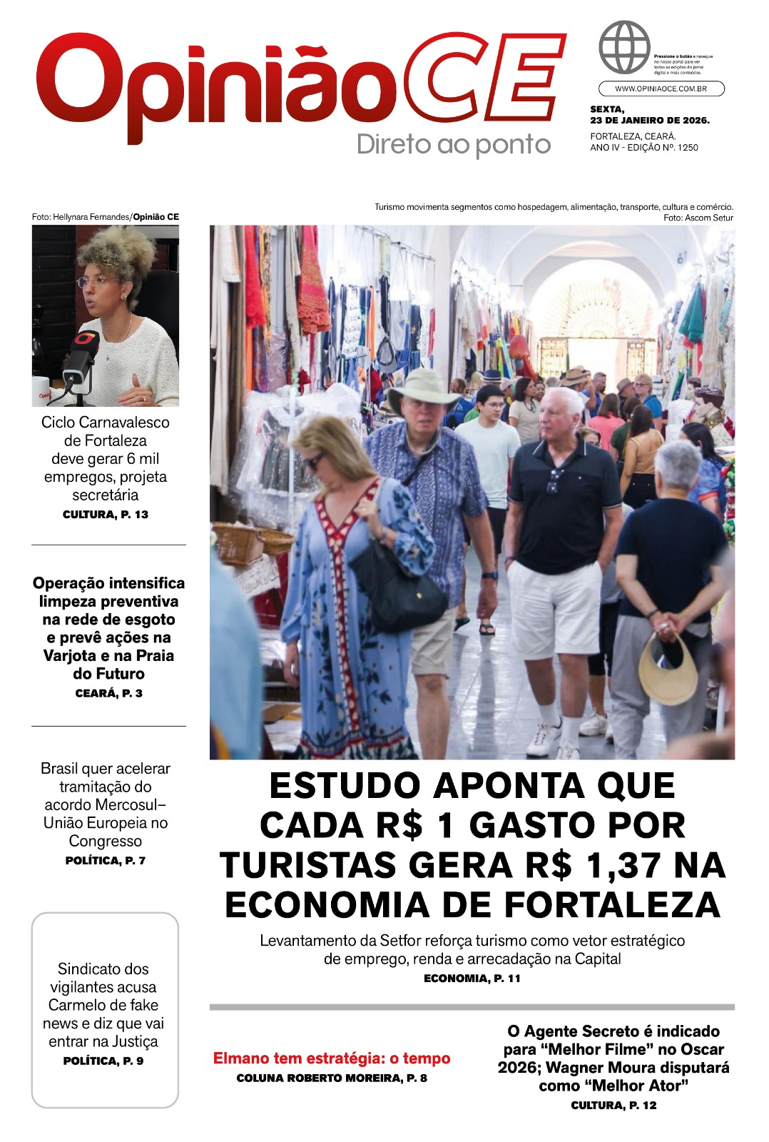 Jornal EDIÇÃO Nº. 1250 ESTUDO APONTA QUE CADA R$ 1 GASTO POR TURISTAS GERA R$ 1,37 NA ECONOMIA DE FORTALEZA