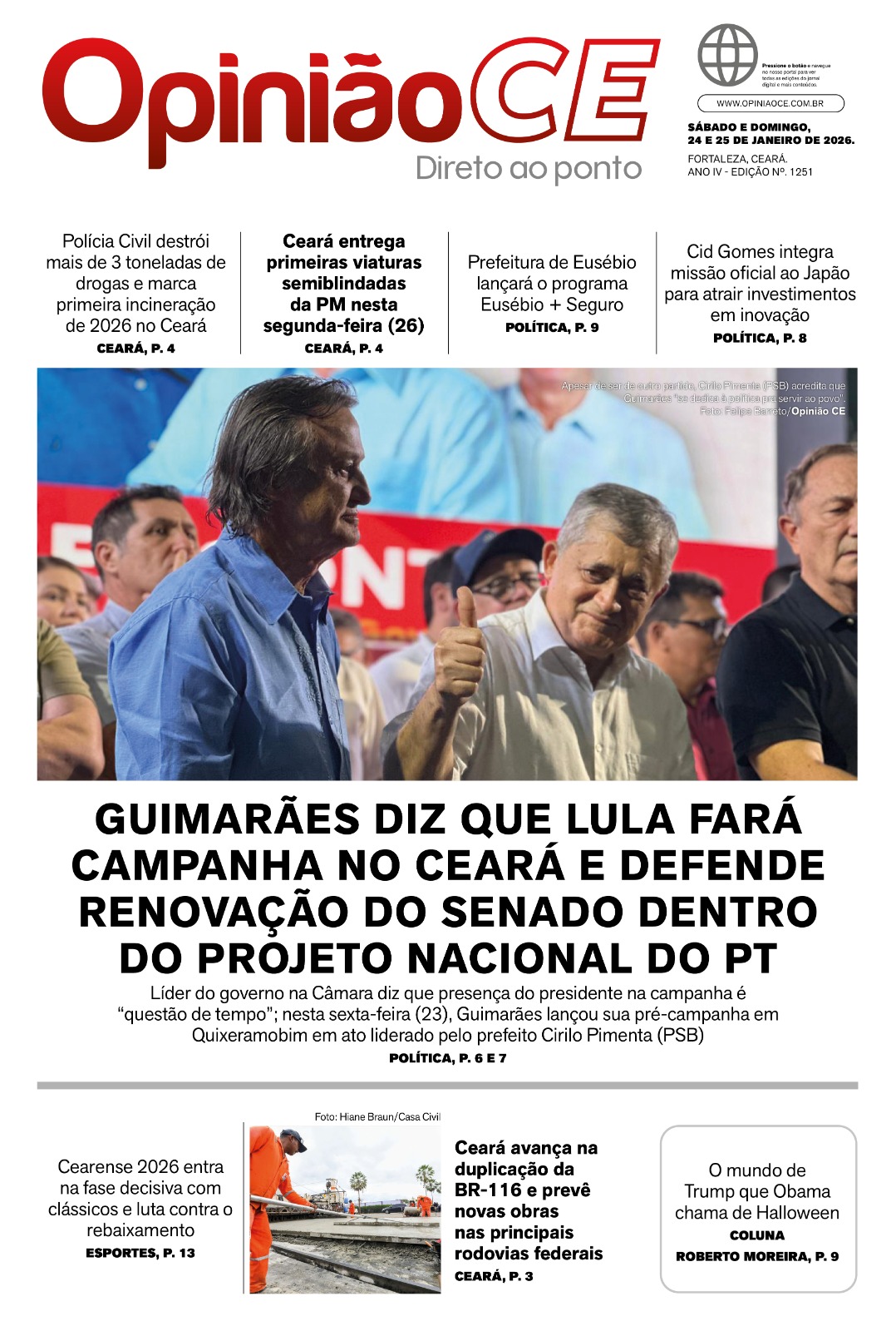 Jornal EDIÇÃO Nº. 1251 GUIMARÃES DIZ QUE LULA FARÁ CAMPANHA NO CEARÁ E DEFENDE RENOVAÇÃO DO SENADO DENTRO DO PROJETO NACIONAL DO PT