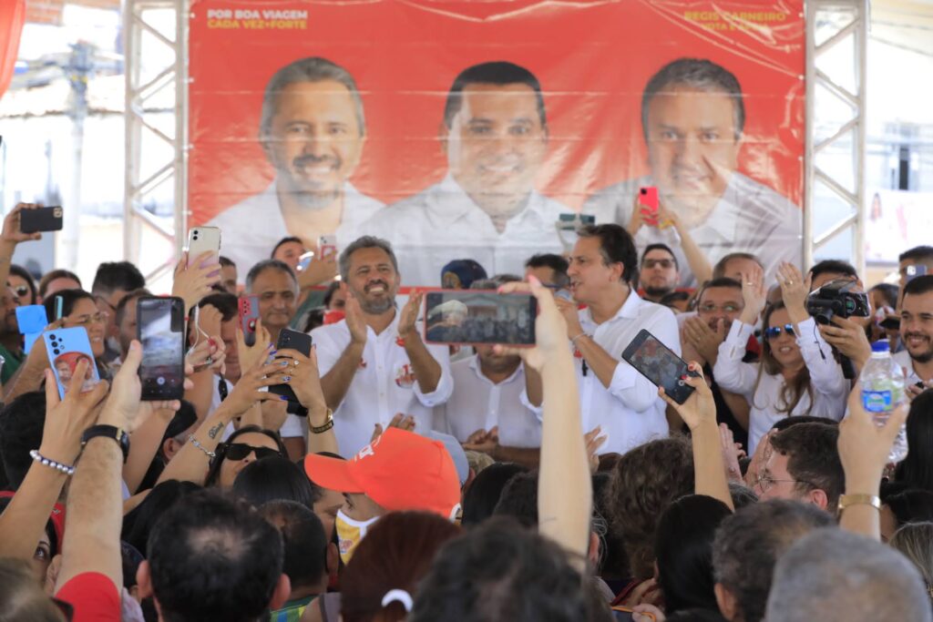 A quatro dias dias do primeiro turno das eleições deste ano, o candidato Elmano de Freitas (PT) cumpriu agenda de campanha em Boa Viagem, nesta quarta-feira, 28, e reforçou suas principais propostas para o Governo do Ceará. Em fala aos apoiadores, Elmano defendeu investimentos em adutoras e dessalinizadores para a política de gestão de recursos hídricos do Ceará.”O Ceará tem um grande projeto, que é o Cinturão das Águas, que nós vamos ter uma parceria com o Governo Federal para garantir água a todos os municípios“, destacou.