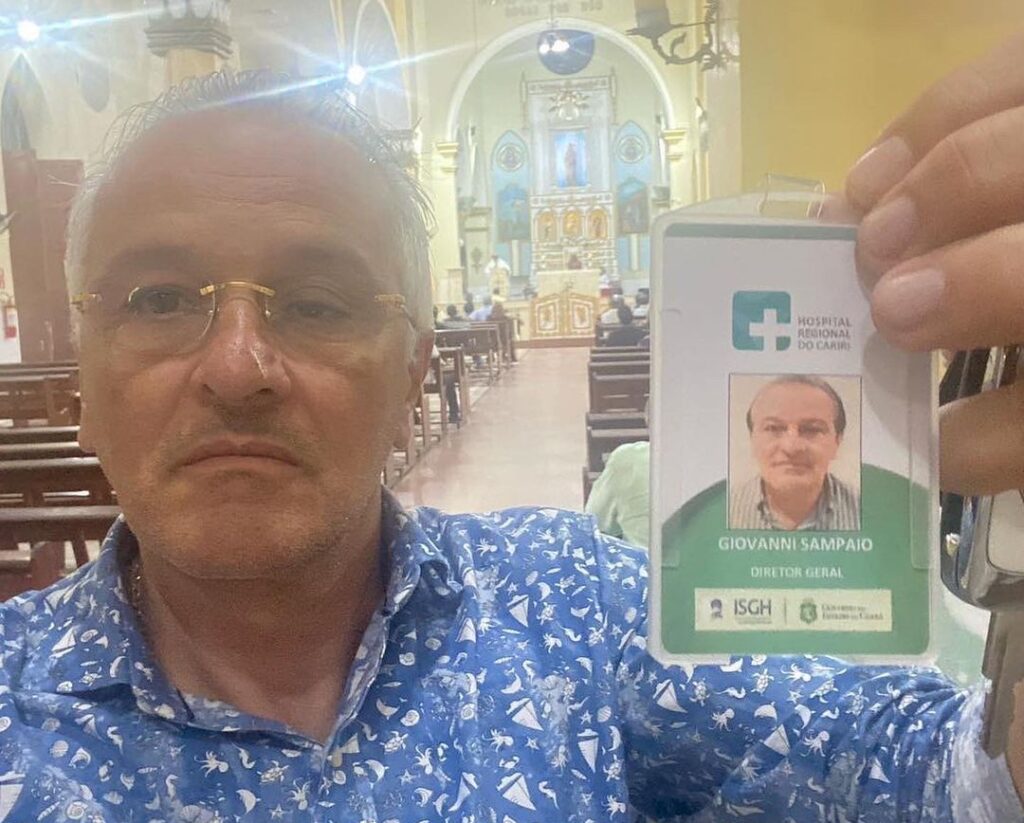 “Agradeço a confiança como mais um colaborador do HRC. Ciente das minhas obrigações e sobretudo do cumprimento aos dispositivos normativos. Acolhimento, atenção, dedicação máxima. Todo e qualquer profissional de saúde, sinta-se em casa, pacientes e familiares a nossa sala seja uma extensão das suas. Respeito, transparência e lealdade, minha marca. Ao sair da primeira reunião hoje, fui a matriz da Mãe das Dores pedir suas graças e proteção, ao tempo que pedi ao Padre Cícero José, Reitor da basílica, para abençoar meu crachá. Que Deus e o Padre Cícero me ilumine nessa missão”, diz a legenda.