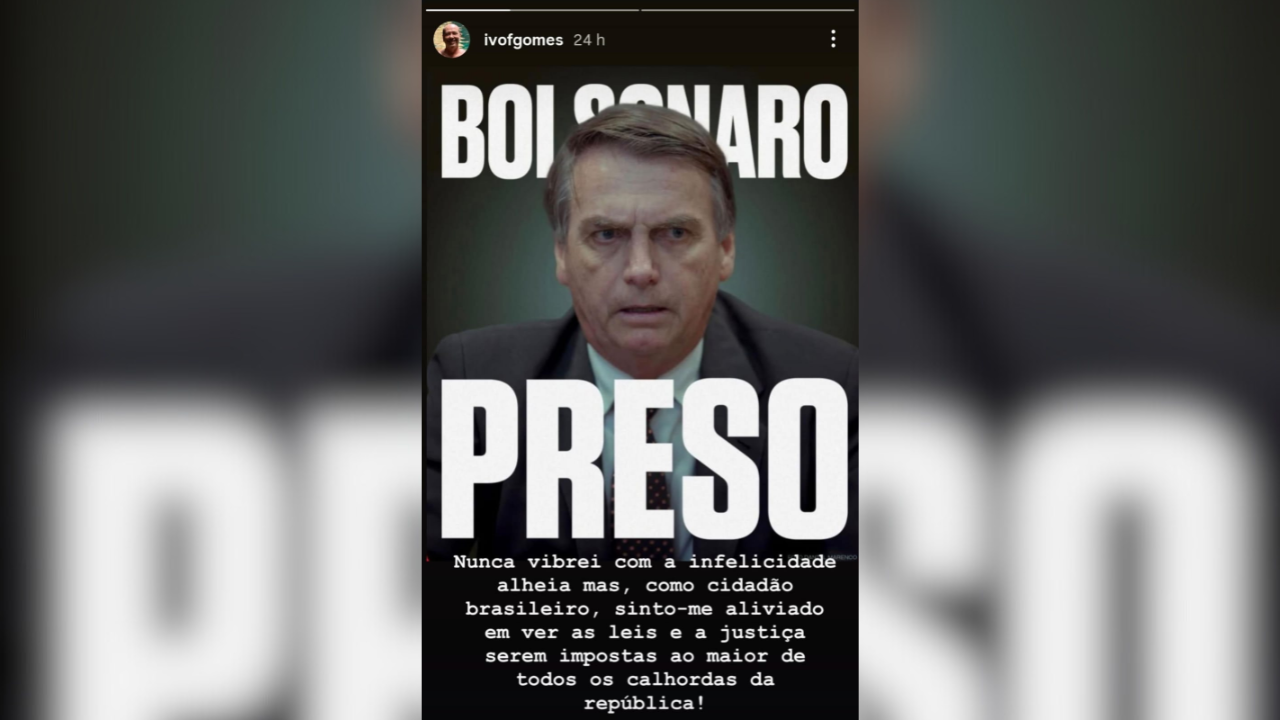 O ex-prefeito de Sobral, Ivo Gomes (PSB), reapareceu com força no debate político nacional ao publicar, neste sábado (22), uma crítica dura ao ex-presidente Jair Bolsonaro, preso preventivamente por determinação do ministro Alexandre de Moraes (STF).