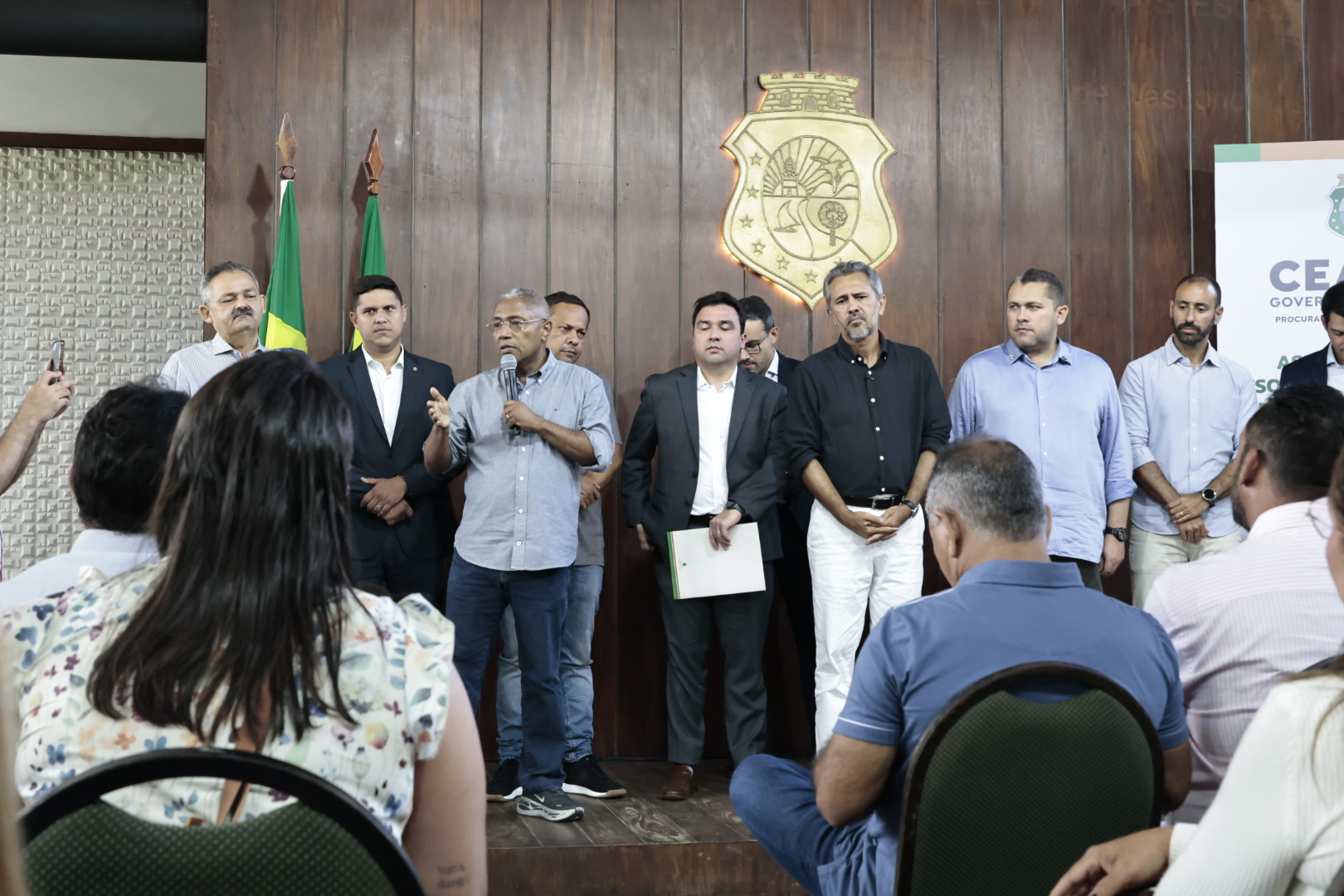 A assinatura contou com a presença do governador Elmano de Freitas (PT), do presidente da Arce, Rafael De Paula, do conselheiro Carlos Alberto Mendes, além de diversos vereadores e prefeitos.