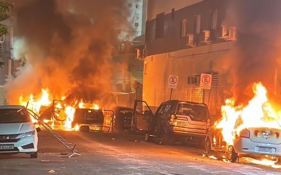 Esportes Torcedores santistas incendeiam 10 veículos revoltados com rebaixamento do Peixe Por Fernando Barbosa · 7 de dezembro de 2023